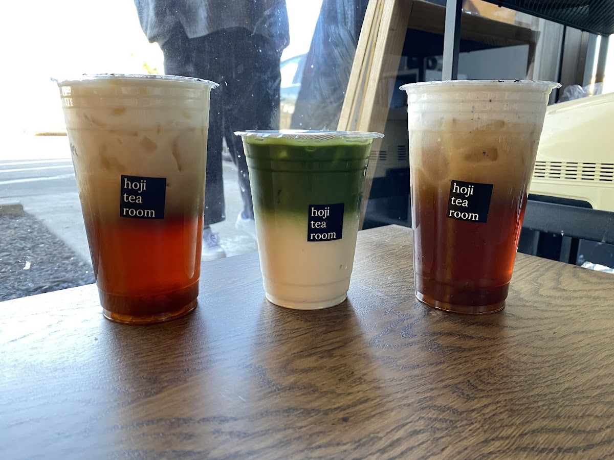 The menu at Hoji Tea Room features some of the best signature drinks you'll find in town. If you're a fan of rich, earthy flavors, the Hojicha Black Sesame is an absolute must-try. This drink, made with roasted green tea, combined with the unique nutty flavor of black sesame, creates a comforting and satisfying experience. For those who enjoy a creamy, sweet treat, the Thai Milk Tea is the way to go. Its smooth texture and perfect balance of sweet spices will leave you craving more. And of course, the Black Tea is a great classic, offering a robust and full-bodied flavor that pairs wonderfully with any of their snacks.