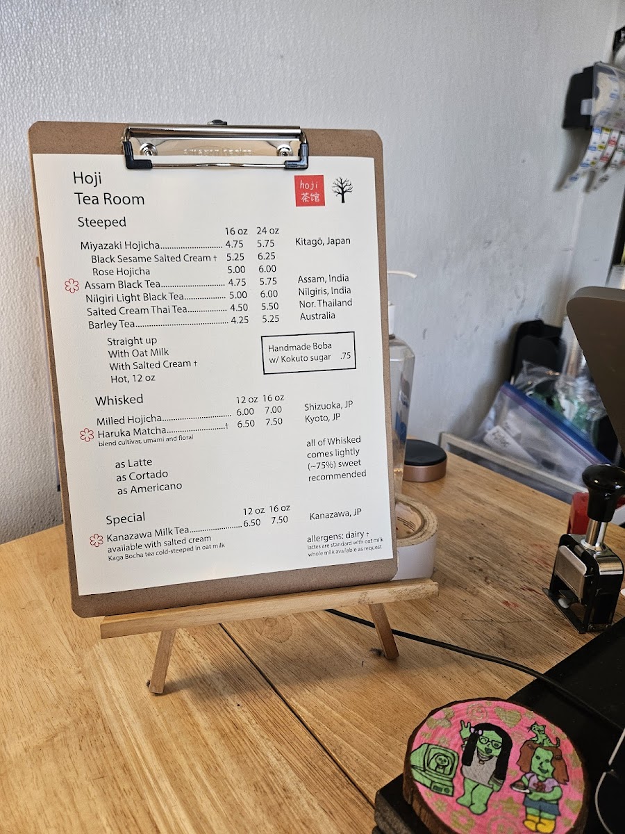 Hoji Tea Room offers a delightful array of beverages that showcase their expertise in tea blends and flavors. Their Hojicha Black Sesame stands out as a unique and flavorful option, blending the roasted richness of hojicha with the nutty smoothness of black sesame, creating a comforting and distinctive taste. For those who prefer something sweeter, the Thai Milk Tea is a perfect choice, rich with creamy sweetness and the unmistakable aroma of traditional Thai tea. If you're in the mood for a more classic option, their Black Tea delivers a robust and full-bodied experience, ideal for tea purists. With these standout offerings, Hoji Tea Room provides a wonderful tea experience that combines both the familiar and the inventive, ensuring there's something for everyone to enjoy.
